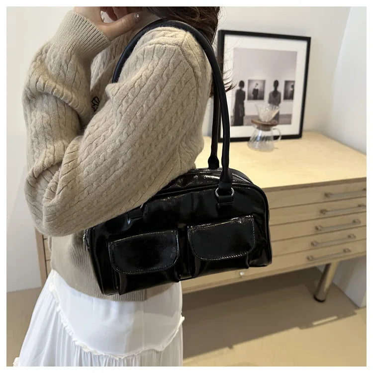 Retro PU Leather Hobo Satchel – Women’s Designer Armpit Bag with Double Pockets